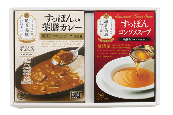 贈答用すっぽん入り薬膳カレー3食+すっぽんコンソメスープ3食セット 商品番号2023081